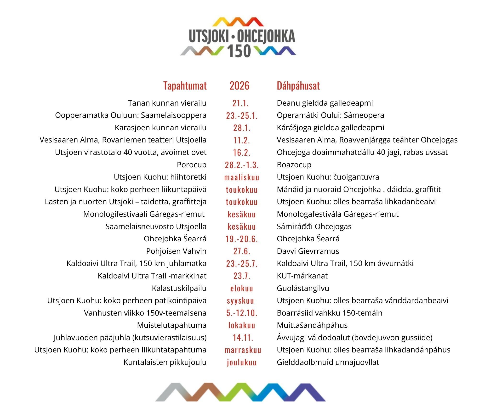 Utsjoen kunta juhlii ensi vuonna 150-vuotista taivaltaan. Ensi vuoden tapahtumakalenteri on teemoitettu juhlavuoden mukaan.